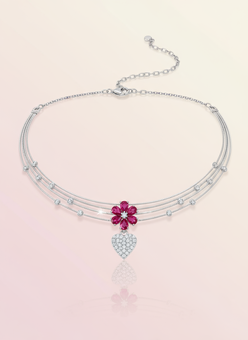 Emerald Heart Elegance – a captivating green floral necklace with a sparkling heart pendant, perfect for gifting young fashion lovers and romantic moments.