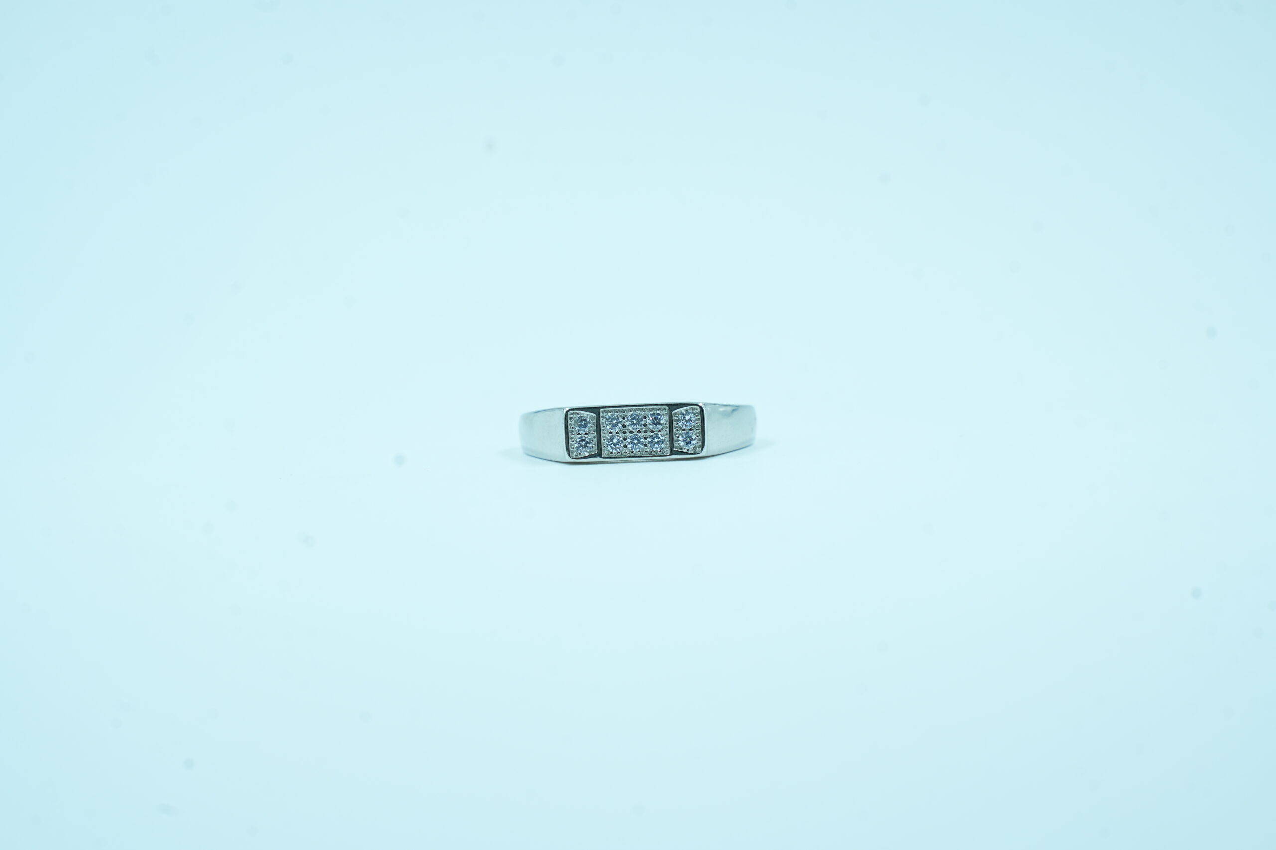 Modern silver band ring with a rectangular cluster of sparkling stones—sleek, stylish, and versatile for all occasions.